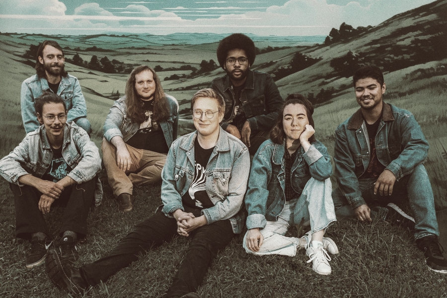 Formed in 2022 in Louisville, Kentucky, U.S.A. by 7 music school nerds, DOOM GONG has made a name for themselves internationally with their own home-baked genre, Denim Psych – a hodgepodge of psychedelic rock, jazz fusion, prog rock, bedroom pop, lo-fi, contemporary classical music, as well as blood, sweat, and a lot of denim.